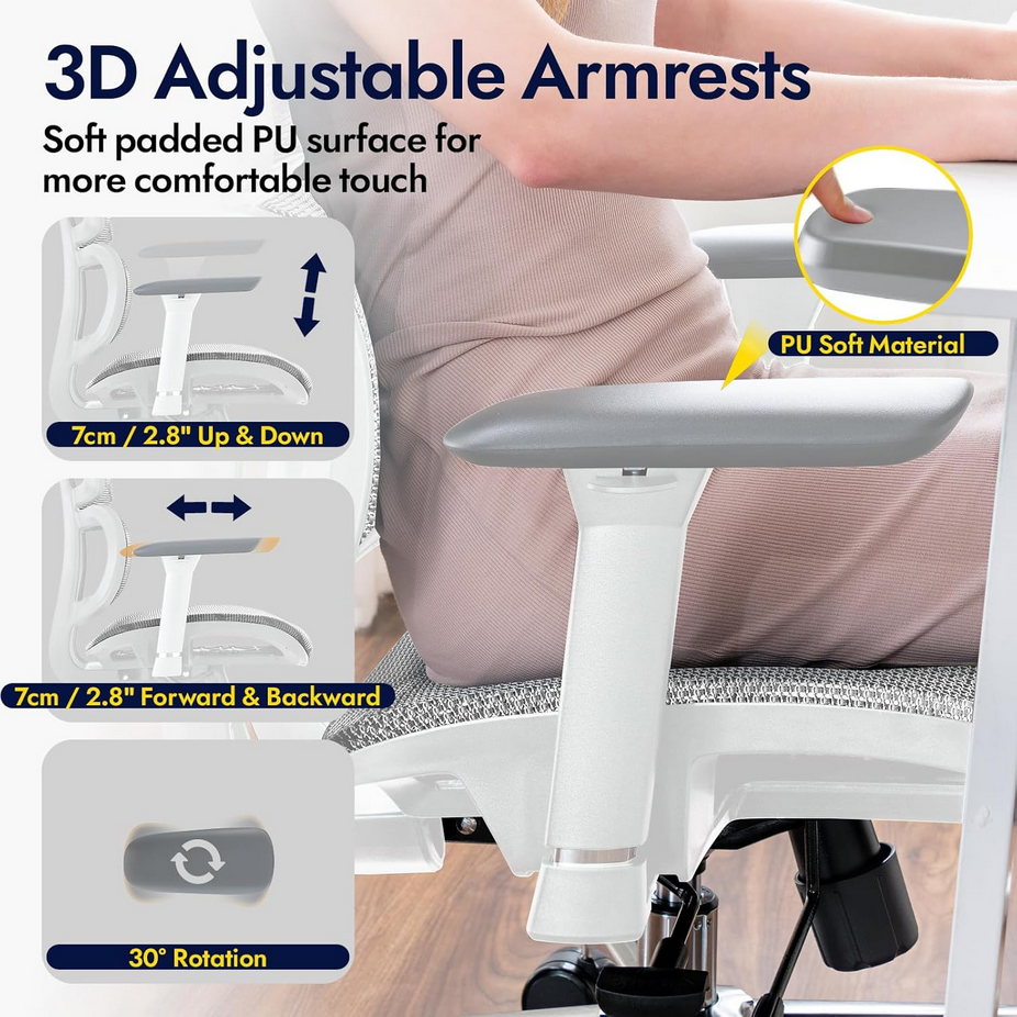 - Breathable Mesh & Tilt Backrest – The computer chair is constructed from high-quality elastic mesh, offering breathability, firmness, and easy cleaning to save time on maintenance. The ergonomic desk chair features a dynamic tilt backrest with 3 adjustable angles, allowing you to: Maintain an upright 90° position for focused work or study. Recline to 115° for a balanced posture during extended tasks. Tilt back to 130° for relaxation, ideal for long hours of sitting, gaming, or breaks.